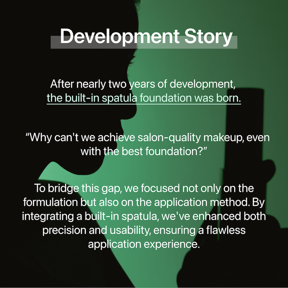 1. Take out spatula from the bottle 2. Tilt the spatula at an angle and smooth the foundation over your skin