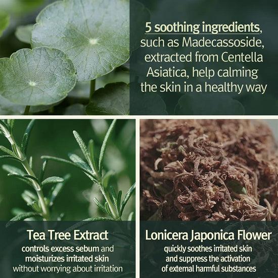 Water, Dipropylene Glycol, Disodium Laureth Sulfosuccinate, Disodium Cocoyl Glutamate, Coco-glucoside, Decyl Glucoside, Butylene Glycol, Citric Acid, Caprylyl Glycol, Hydroxyacetophenone, Pentylene Glycol, Polyglyceryl-10 Myristate, Camellia Japonica Flower Extract, Centella Asiatica Extract, Sodium Hyaluronate, Lonicera Japonica (Honeysuckle) Flower Extract, Salix Alba (Willow) Bark Extract, Salvia Officinalis (Sage) Leaf Extract, Melaleuca Alternifolia (Tea Tree) Leaf Extract, Cetyl Ethylhexanoate, Ethylhexyl Palmitate, Caprylic/Capric Triglyceride, Hydroxypropyltrimonium Hyaluronate, Hydrolyzed Hyaluronic Acid, Sodium Hyaluronate Crosspolymer, Madecassoside, Madecassic Acid, Sodium Acetylated Hyaluronate, Asiaticoside, Asiatic Acid, Polyquaternium-67, Propanediol, Ethylhexylglycerin, Disodium EDTA, 1,2-Hexanediol